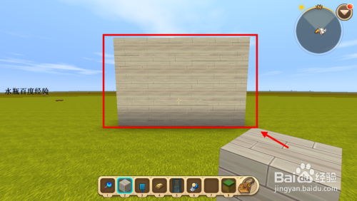 首先盖好一堵墙。当门做好后我们可以沿着墙盖房子。