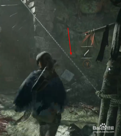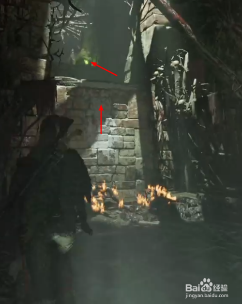 战斗生还后,从有白色标识表记标帜的墙攀爬上去,继续前行。