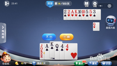最后我打出一对4,接着打出一张A一张Q就过关了。