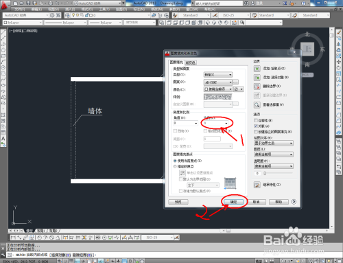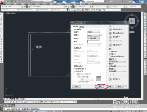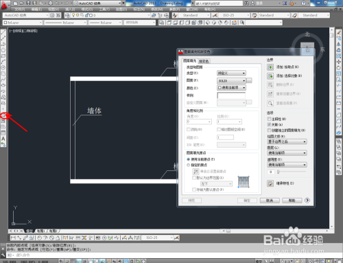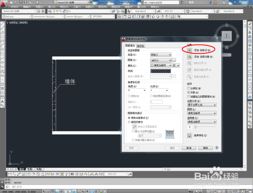 填充墙体第二层图案。点击【图案填充】,弹出图案填充渐变色对话框。点击选项版,按照划定选好墙体第二层填充样式。点击【添加拾取点】,拔取墙体部门,点击【确定】,完当作填充;