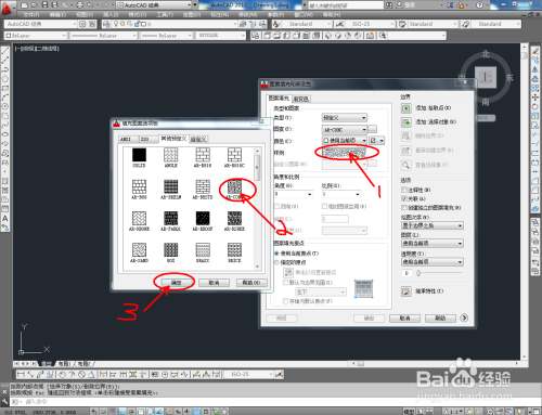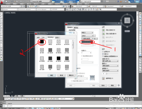点击【图案填充】,弹出图案填充渐变色对话框。我们先填充分体楼板,点击选项版,按照划定选好楼板填充样式。点击【添加拾取点】,拔取楼板部门,点击【确定】,完当作填充;