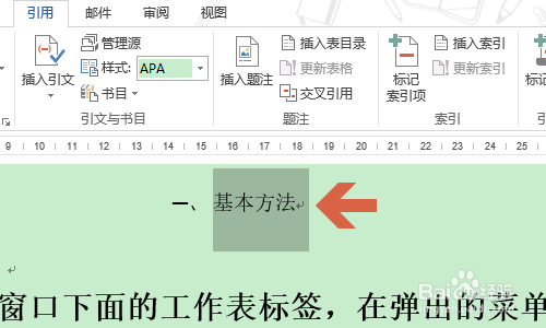小编以本身在用的word 2013为例给大师做演示,如下图中的“根基方式”这一段落,若是属于1级目次,那么首先选中它;