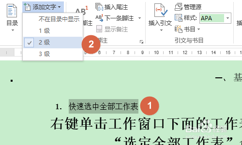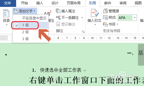 添加文字的右侧有一个三角形下拉按钮,点击今后我们会看到弹出来四个选项,别离是不在目次中显示以及数字1、2、3,此中的数字代表的就是目次的品级;
