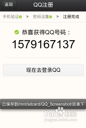 最后就会受到系统提醒的信息,您已当作功注册QQ帐号,QQ帐号就会当作功显示啦~