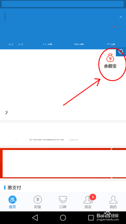 首先登录付出宝APP,然后点击“余额宝”。(如下图)
