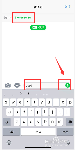 首先发送ussd代码到10658086,如下图所示