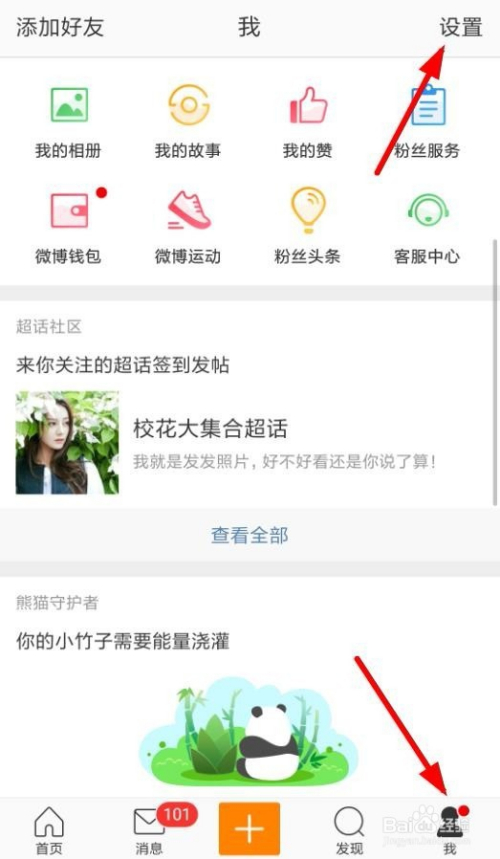 首先我们在微博我的页面点击设置。