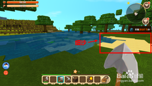 东西台做一把铲子,不做也不妨但挖掘速度很慢。在河道周围转悠找到一种淡黄色的沙子,迷你宿世界管其叫细沙,可用来熔炼玻璃。