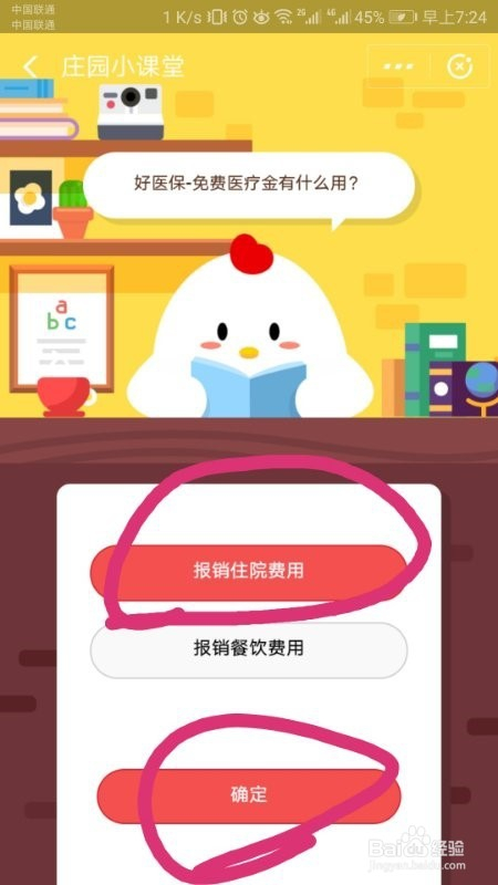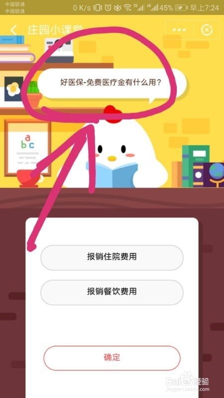 选谜底,报销住院费用,然后点击确定,如图。