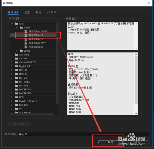 在打开的PR 2018中,找到项目窗口,在项目窗口中右键鼠标,在右键鼠标弹出的选项中选择新建一个序列,然后选择一个1080p的序列点击新建。