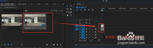选中项目办理窗口中导入的视频素材,将其拖入到新建的序列中,放在视频轨道1上,若是提醒与序列不匹配,选择默认即可。