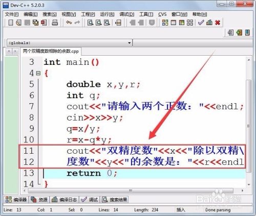输入两个双精度浮点数x和y,要求两个数都是正数,求它们相除获得的余数r,如何用C++实现这一运算呢?小编与大师分享一下编程经验。