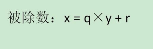 被除数x等于,除数y乘以一个整数系数,加上余数,如下图所示。