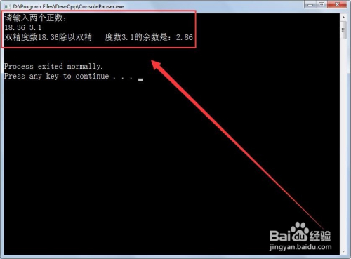 测试法式,输入两个实数后,计较机就管帐算出相除的余数。