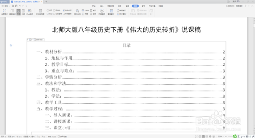 利用WPS文字打开文档。如何为这篇文档生当作目次呢?