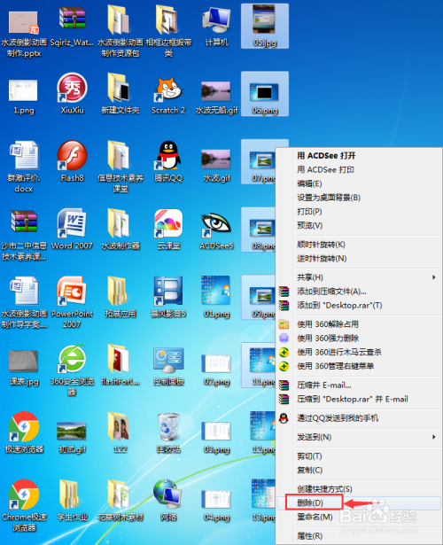 然后按住shift键不放,选择最后一个要删除的文件,如许就可以将这些文件全数选中,然后用上述同样的方式删除这此不需要的文件。