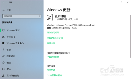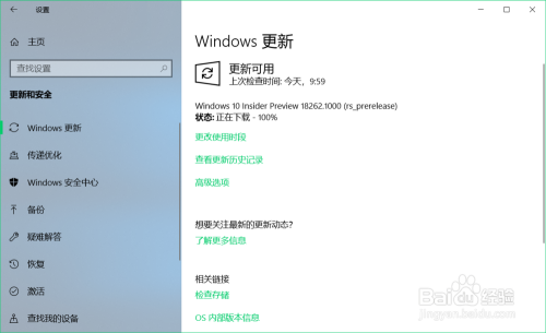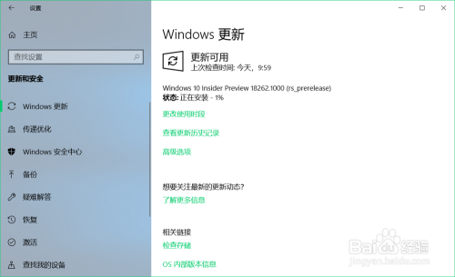 下面介绍Windows 10 19H1跳跃预览版更新到18262版系统过程。