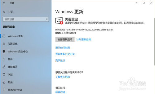 更新进级Windows 10 Insider Preview 18262.1000 (rs_prerelease)系统前的筹办操作