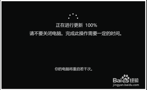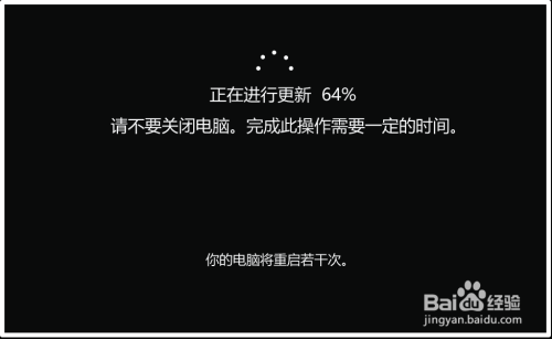第二步:电脑从头启动今后,更新从 64% ~ 100%,电脑第三次从头启动;