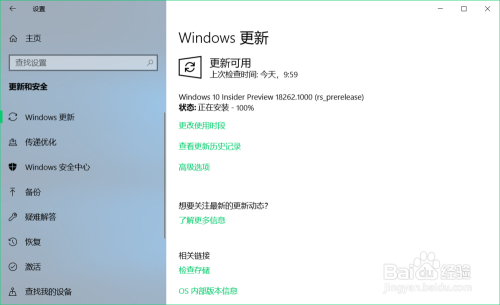 Windows 10 19H1跳跃预览版更新到18262版系统过程