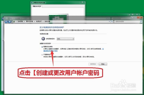 点击左下角的【更改电源设置】;在弹出的新的页面中点击左侧的【叫醒时需要密码】。