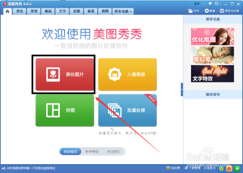 在软件的首页,找到“美化图片”后单击