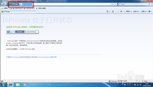 点击InPrivate模式窗口中的地址栏,可以看到适才浏览的网页没有被记实下来;