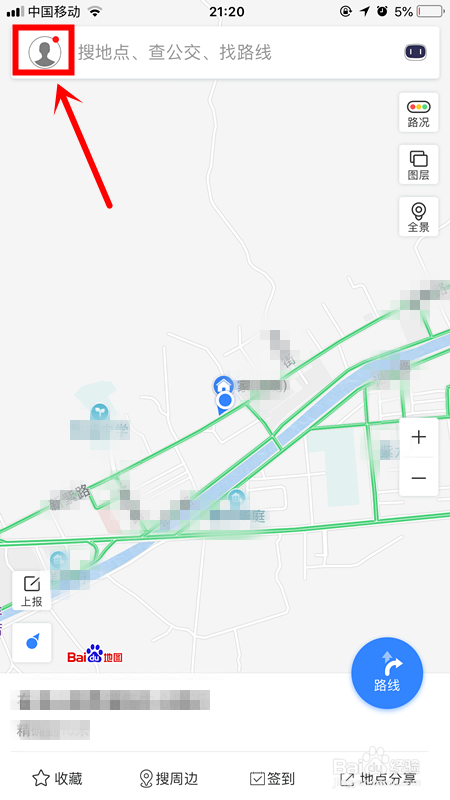 打开手机百度地图app,点击左上角的用户图标。