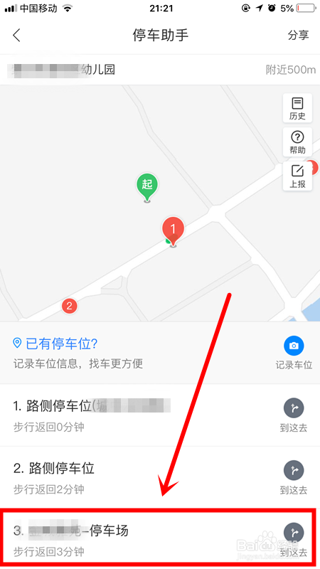 弹出的选项中,选择一个想要前去的泊车场,点击打开。