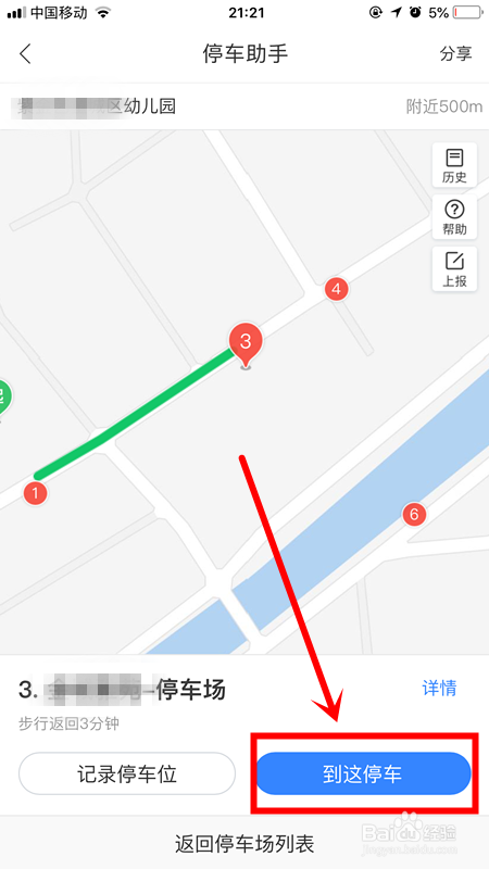 点击“到这泊车”。