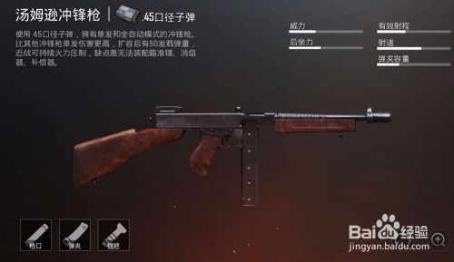 汤姆逊冲锋,配45枪弹,可单发可主动,扩容后枪弹数最多,切危险高,错误谬误是不克不及配镜