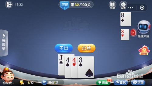 最壮大脑打出一张8,我打出一张J,接着打出一对4一张3就过关了。