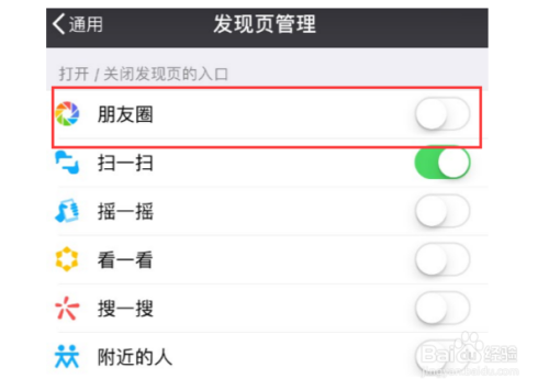 再返回发现页,就没有朋友圈进口了