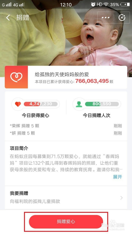 会呈现“公益项目”,选择我们想要捐赠的项目。