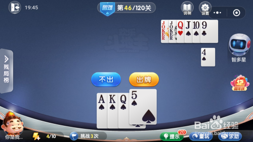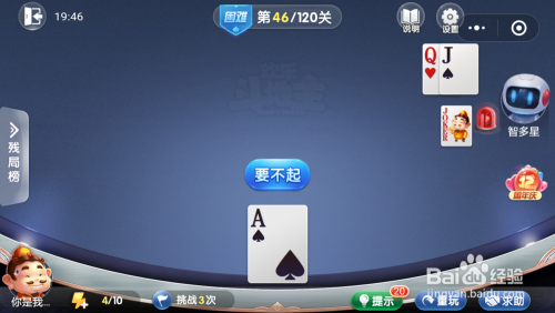 智多星打出一张年夜王,接着打出一张J,然后我打出一张A就过关了。