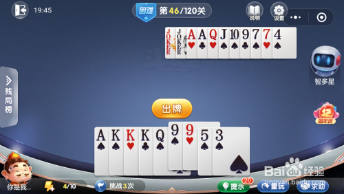 第46关先打出一对9,智多星打出一对A。