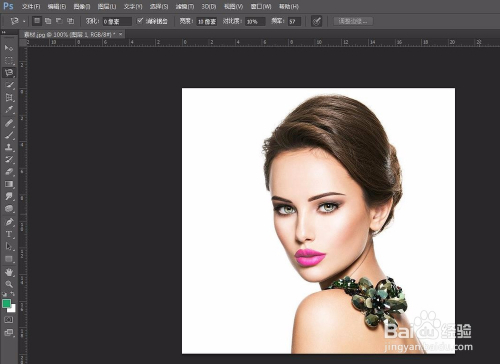 第一步:打开PS软件,找到需要改换口朱颜色的图片并打开。