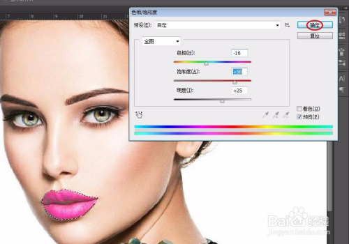 第六步:调整“色相/饱和度”小滑块至对劲为止,单击“确定”按钮。