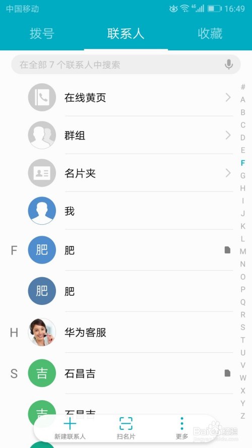 然后在这联系人德律风列表界面中点击更多即可列出更多选项。