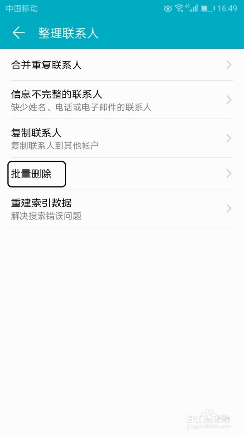 然后打开清算联系人界面,在这界面中点击批量删除选项。