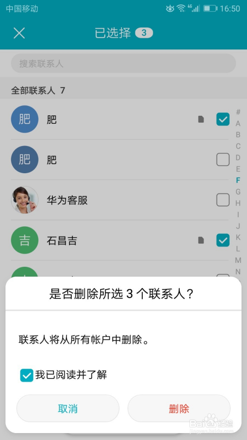 即可打开联系人的德律风列表,打勾暗示已选择。