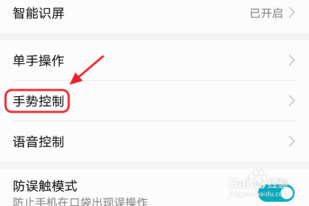 点击智能辅助今后,在跳转到的页面里我们会看到“手势节制”这一项,如下图所示...