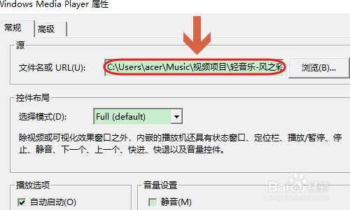 在弹出的属性对话框,我们点击“自界说”右侧窗口中的三个点图标,然后在Windows Media Player属性界面点击右侧的“浏览”选项;