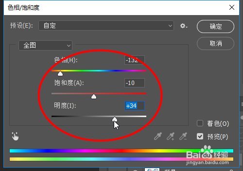 接着点击Ctrl+U,调整好三个颜色条更改颜色即可完当作
