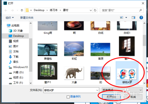 打开Photoshop软件,然后打开一张含哆啦A梦的图片