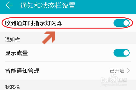 点击进入即可看到关于指示灯的选项,一般来说系统默认此项是开启的,见图一...若是认为没有什么样,可以将其彻底封闭,不外小编仍是建议大师开着此功能;