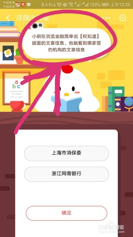 选谜底,上海市消保委,然后点击确定,如图。