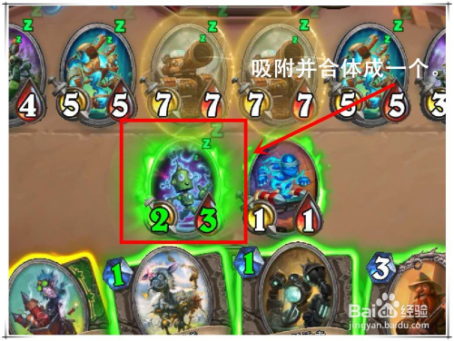 从上图可以看到:“磁力——就是将具有磁力的牌置于机械牌的左侧可使其合体”,简单的说就是,将具有磁力属性的牌放到机械牌的左侧,可以让磁力牌与机械牌合体。下面,是两种牌合体的结果。