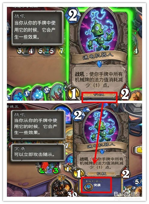 对比磁化前后的两张机械牌,我们可以看到,磁化后的机械牌,比本来的机械牌多了一个原属于磁力牌的“突袭”属性,分歧磁力牌与机械牌的磁化,发生的最终结果分歧。