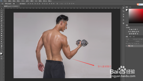 启动并打开Photoshop软件,然后在文件打开中,找到我们要进行纹纹身的人物素材,将其在PS软件中打开并作为布景图层。